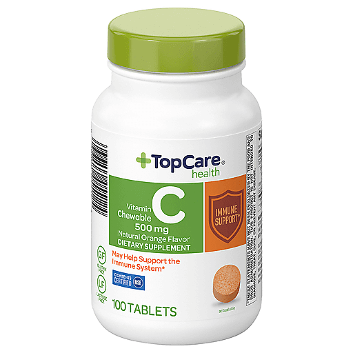 Top Care Chewable Tablets Natural Orange Flavor 500 Mg Vitamin C 100 Ea